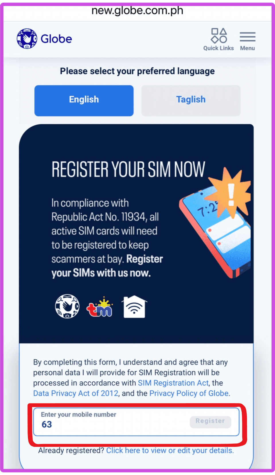 https://new.globe.com.ph/simreg(另開視窗)