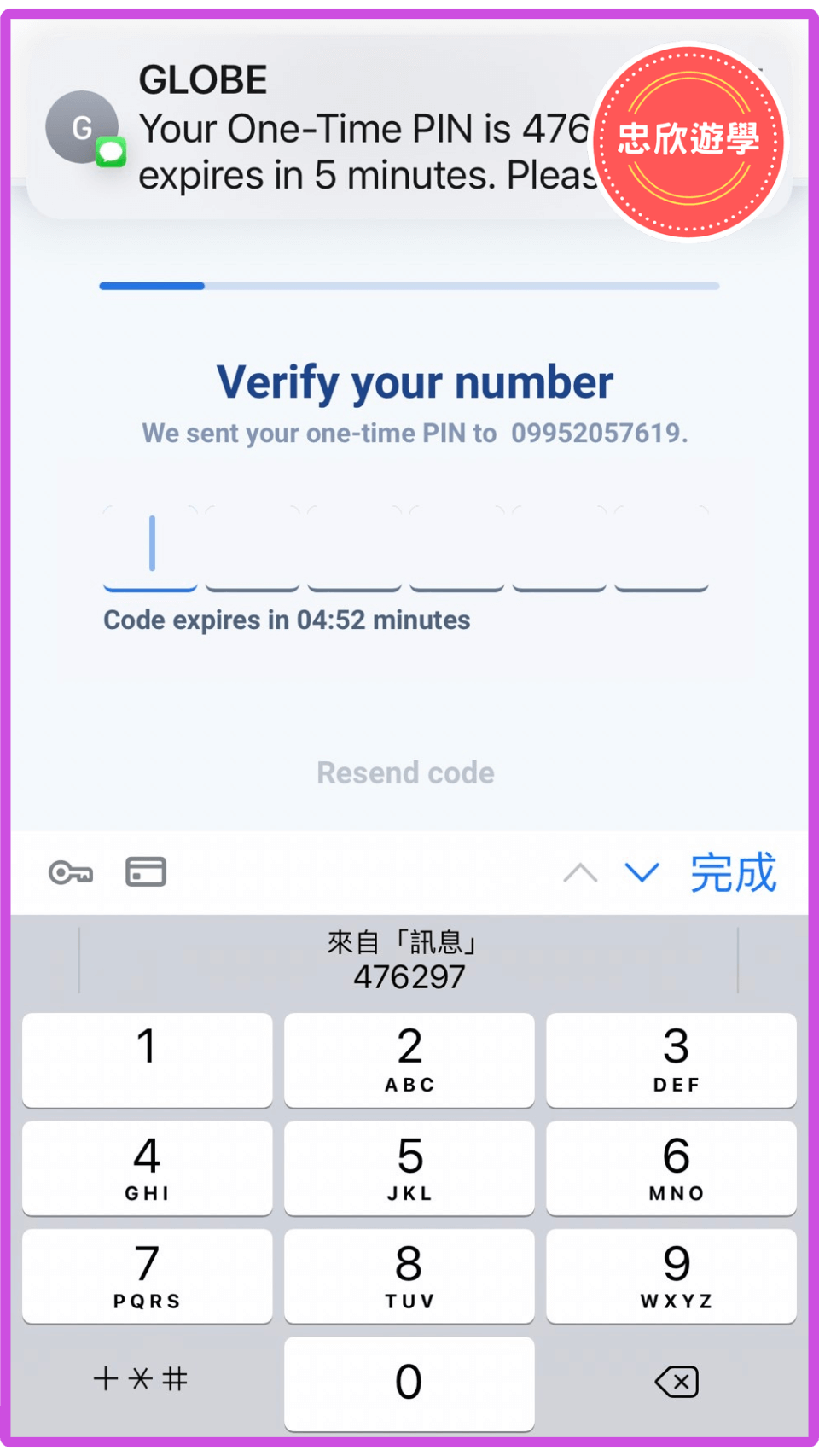 收到簡訊後,內有6碼確認碼