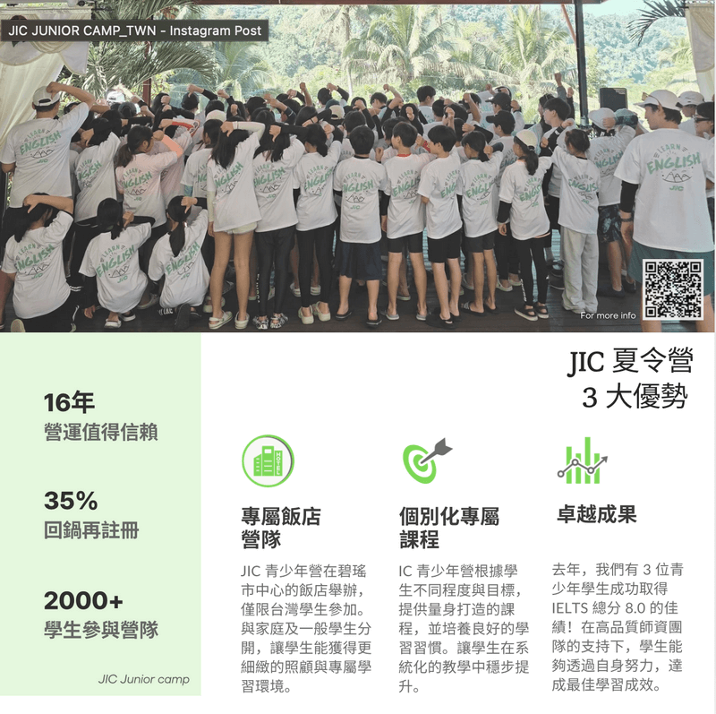 2026 IMS高級夏令營是專為7~15 歲學生設計的英語學習及國際交流營隊。由經驗豐富的專業團隊規劃,結合高效的英語學習與豐富的課外活動,營造全英語環境,讓學員在短期內顯著提升語言能力,同時培養獨立與團隊合作精神。