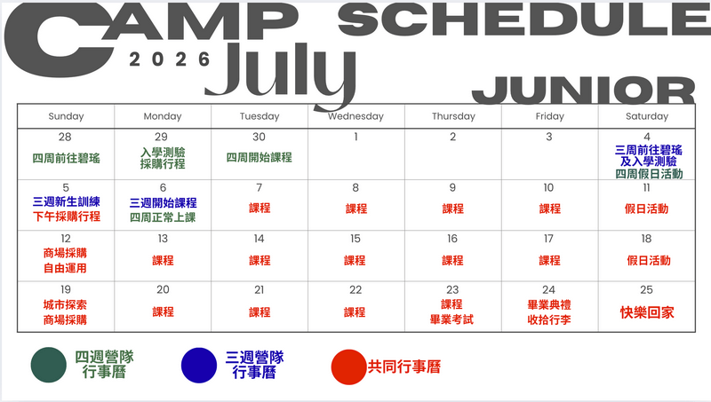 在營隊第三週會有韓國學生。(兩週與韓國學生共同學習,團體課依照程度可能會一起上課)