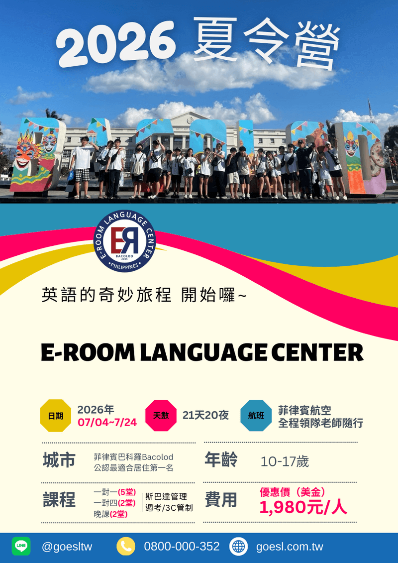 歡迎加入「2026 QQ English 夏令營」!菲律賓遊學首選宿霧,青少年夏令營首選QQ English!擁有2300多名持有TESOL證書的全職教師,提供高效密集的實用課程,3.5星級飯店住宿,完善設施,確保每位學員都能享受舒適的學習環境。