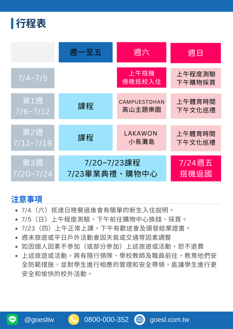 領隊:全程合格領隊隨行、駐校管理