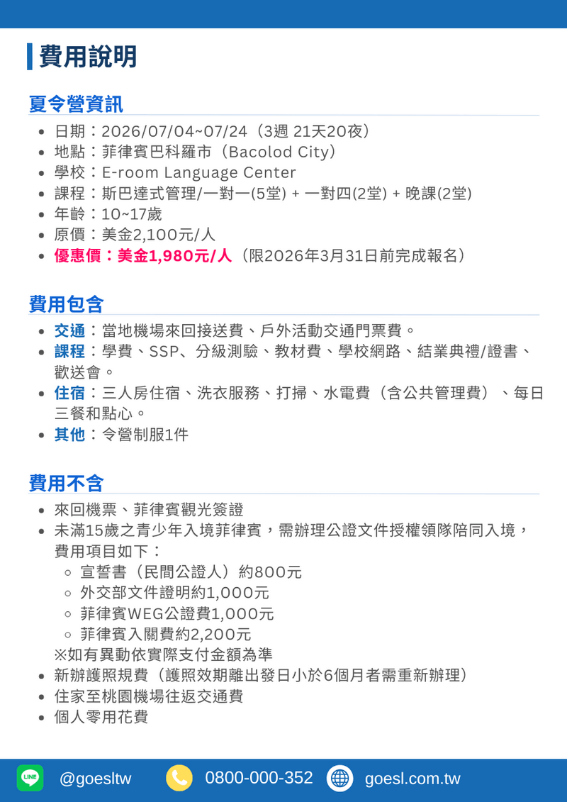 (已額滿)2026暑期夏令營–宿霧QQE