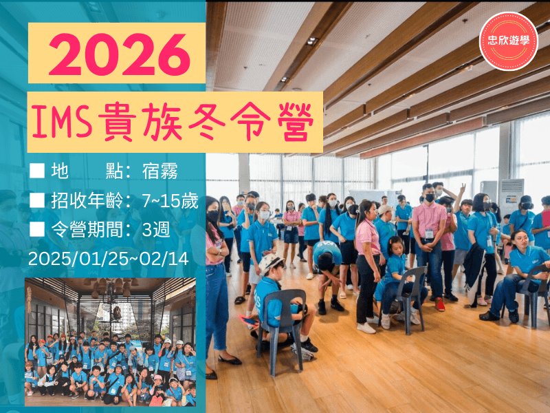 IMS貴族冬令營是專為7~15 歲學生設計的英語學習及國際交流營隊。由經驗豐富的專業團隊規劃,結合高效的英語學習與豐富的課外活動,營造全英語環境,讓學員在短期內顯著提升語言能力,同時培養獨立與團隊合作精神。