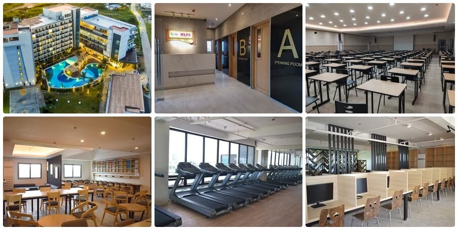| 雅思課程 | 打工度假一對一2堂 + 一對一2堂 + 小班團體課1堂 + 中班團體課1堂 + 大班團體課1堂 + 選修團體課1堂 + 寫作/自習 ,最高8堂 / 日 |